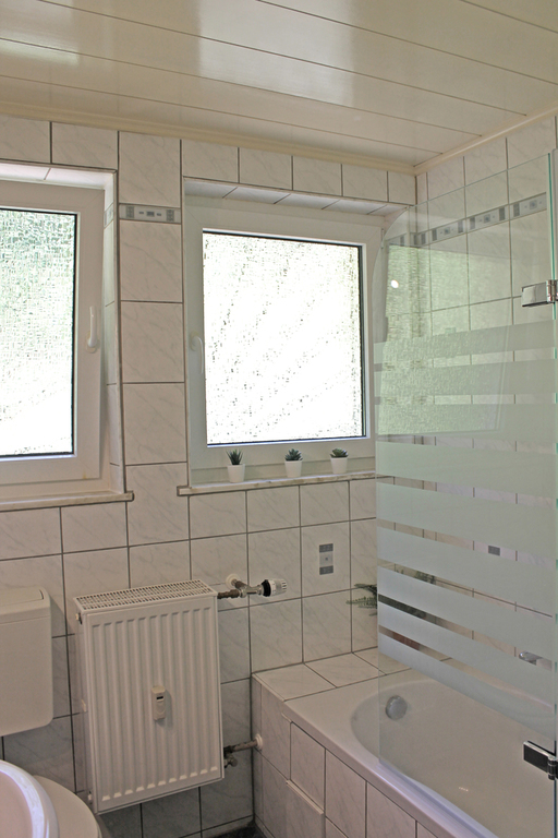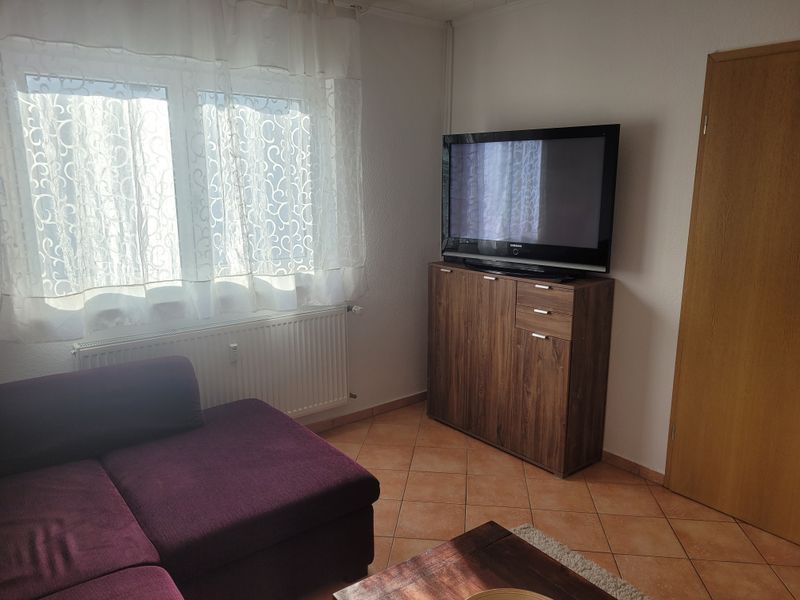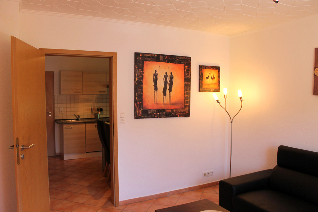 Die Wohnung 2 (ca. 70 qm²) besteht aus Wohnzimmer, Küche, Bad, Flur und zwei Schlafzimmern. Sie ist somit für max. vier Personen ausgelegt. Auch die Küche bietet ausreichend Platz. Sie hat eine Spülmaschine, Herd mit Cerankochfeld, Backofen