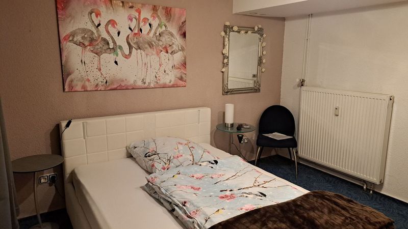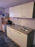 Sie besteht aus einer Essküche (kleine Küchenzeile ohne Backofen, 2 Herdplatten), Bad, Flur und einem Schlafzimmer (Bett 140 x 200 cm)