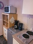 elektrische Küchengeräte wie Kühlschrank ohne Gefrierfach, Mikrowellengerät, Senseo-Kaffeepadmaschine, Wasserkocher und Toaster sind vorhanden.